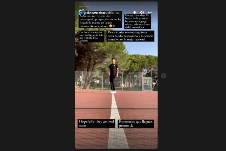 El patinador reveló que su maleta no llegó con él al país europeo y está preocupado porque ahí estaban sus patines.