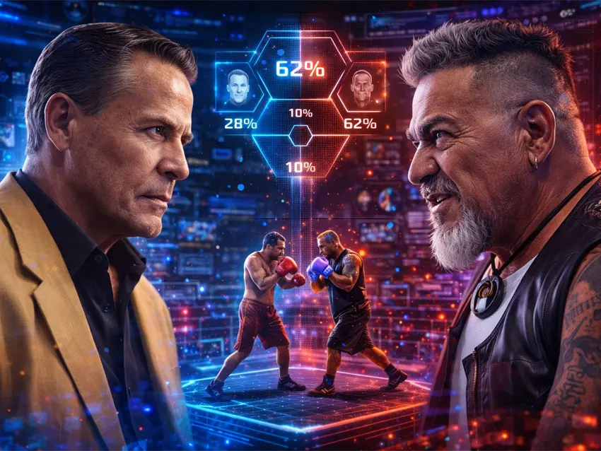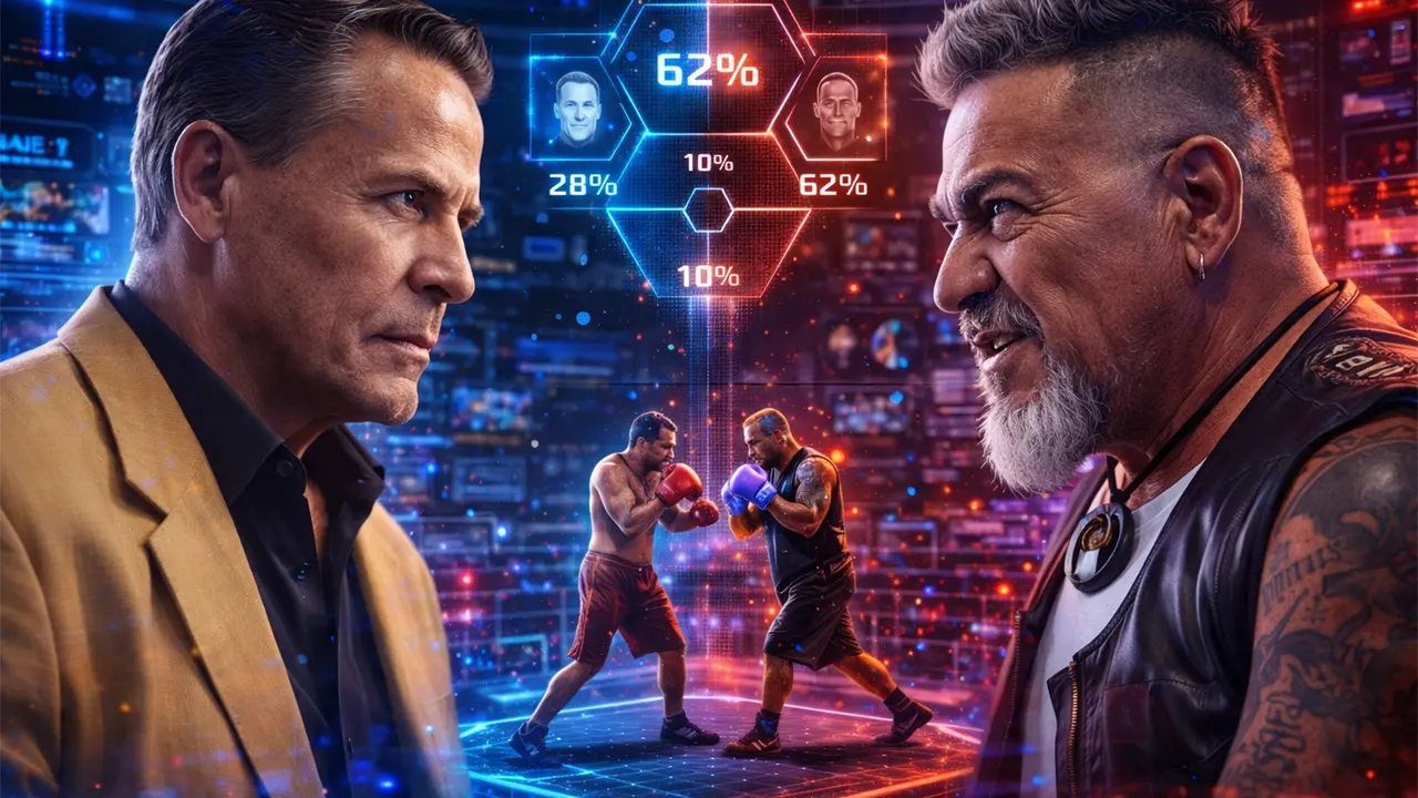 Según la simulación, el "cazafantasmas" tendría un 62% de probabilidad de imponerse, principalmente por su resistencia y capacidad de mantener el ritmo en rounds cortos. En contraste, Adame aparece con un 28% de probabilidad de triunfo, mientras que el 10% restante corresponde a escenarios de empate o suspensión del combate.