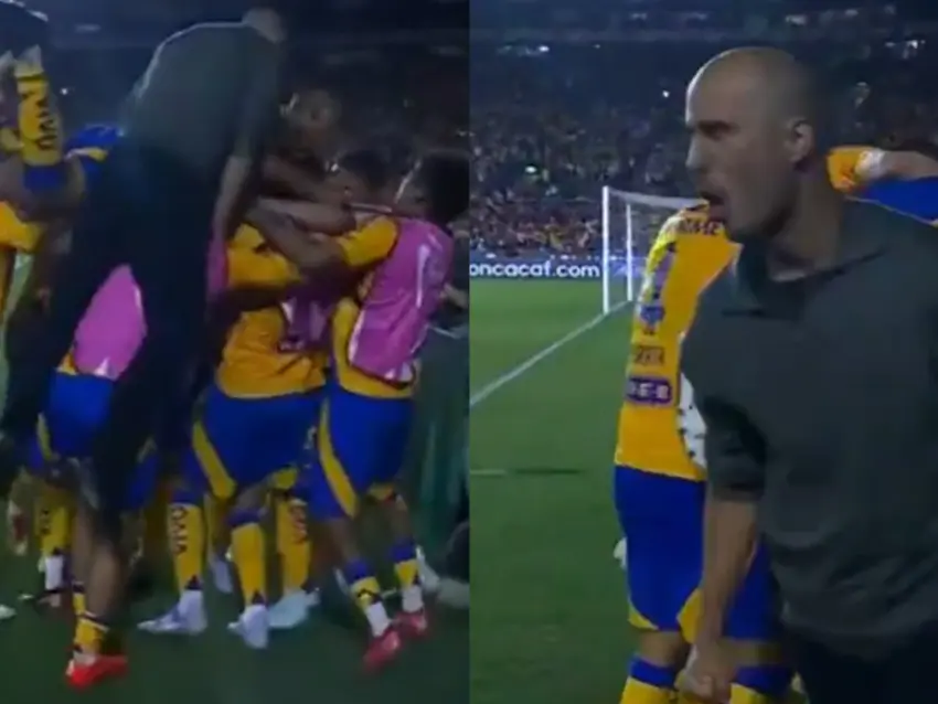 Tan solo ocho minutos bastaron para que Tigres le diera la vuelta al partido y en el segundo gol Guido Pizarro dejó de lado su papel como entrenador y no dudó en ir a festejar con el resto de los jugadores, tal como lo hubiera hecho si aún tuviera su puesto como futbolista.