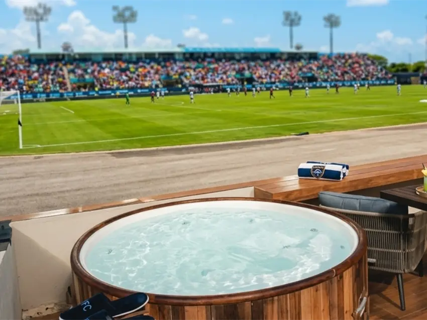 El club caribeño había adaptado un área completa de la tribuna instalando una alberca ampliada, un par de jacuzzis, sillones y espacio suficiente para que grupos de hasta 12 personas vivieran el juego en modo "resort futbolero". Según el propio equipo, el objetivo era mejorar la experiencia de turistas y aficionados que buscan algo distinto a la butaca tradicional.