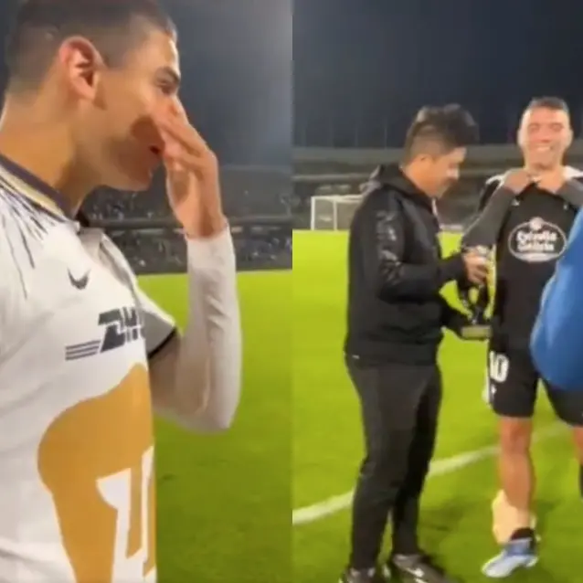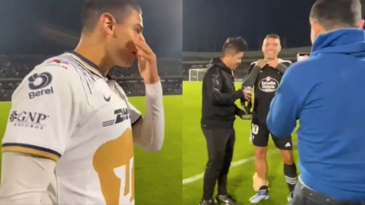 En el video que compartió TUDN en sus diferentes cuentas, se ve como José Navarro, canterano de Pumas, esperaba con ansías para pedirle el jersey a Iago Aspas y cuando vio el que YouTuber se la iba a llevar, dijo "ya me la ganaron".