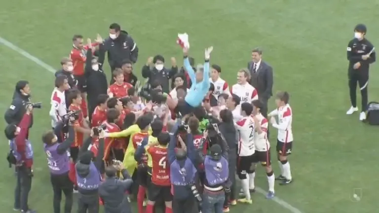 Durante el partido entre Nagoya Grampus vs Urawa Reds, el árbitro Murakami decidió poner fin a su trabajo tras 53 años en las canchas, por lo que los jugadores le rindieron un homenaje especial.