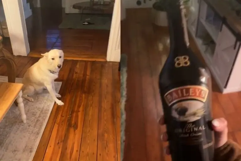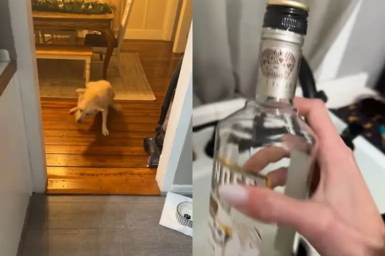 Una mujer compartió en redes sociales que su perro logró abrir dos botellas de bebidas alcohólica, algo que la sorprendió y reveló cómo quedó.