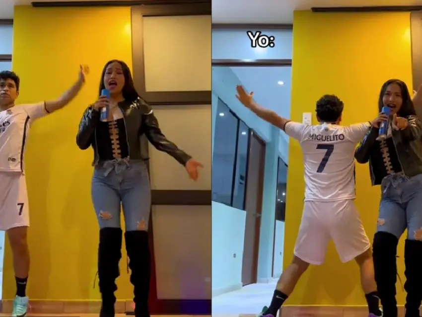 A veces los hombres no son muy fanáticos de mostrar sus mejores pasos en una plataforma de internet y prefieren no aparecer, sin embargo, en este caso fue por obligación, ya que hubo amenaza de por medio: si no bailaba, ella no lo dejaría ir a su partido de futbol.