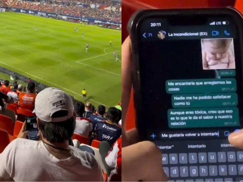 Un curioso video se volvió viral luego de que un seguidor del futbol mexicano no viera un juego en el estadio por escribirle a su expareja.