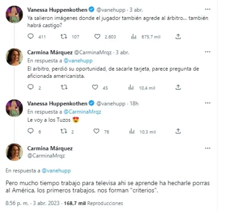 En las redes sociales surgen miles de discusiones, sin embargo no todas son tan amistosas y ahora Vanessa Huppenkothen protagonizó una donde estalló con un seguidor que le recordó su paso por Televisa y todo por lo que ocurrió en el América vs León.