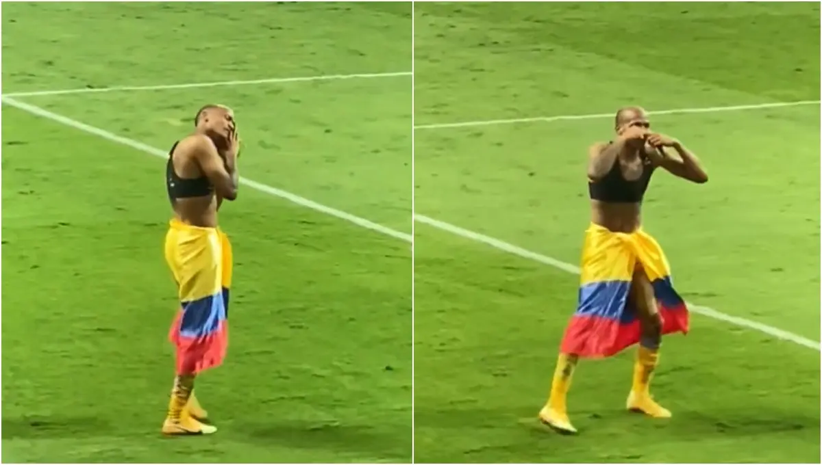El delantero colombiano fue uno de los futbolistas que más dio de qué hablar durante el encuentro de vuelta, esto debido a que hubo personas que pensaron que jugó de gratis debido a que pateó el balón a la banca rival y también insultó al árbitro asistente, por lo que debió ser expulsado.