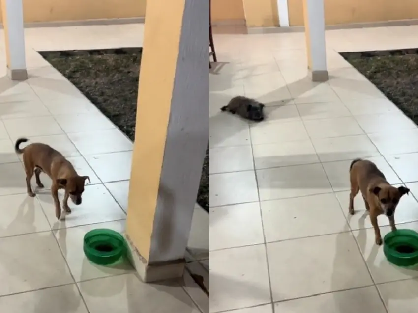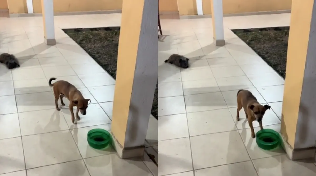 Además, por si no fuera poco el miedo que ahora tiene el pequeñito, a los pocos segundos de terminar el video se ve que el que está grabando le hace una finta para asustarlo de broma, por lo que se observa que el perro se hace para atrás en un movimiento y después voltea a ver a la cámara para proceder a tomar agua.