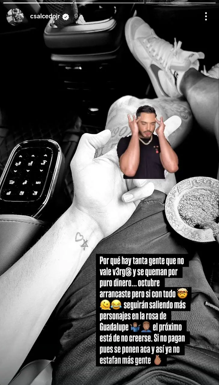 Previo a la publicación de esta denuncia, Carlos Salcedo había advertido de sus intenciones en contra de algunas personas esto al publicar una historia en su cuenta de Instagram donde lamentó que exista gente que se queme por puro dinero, además de destacar que tienen actitudes cuestionables.
