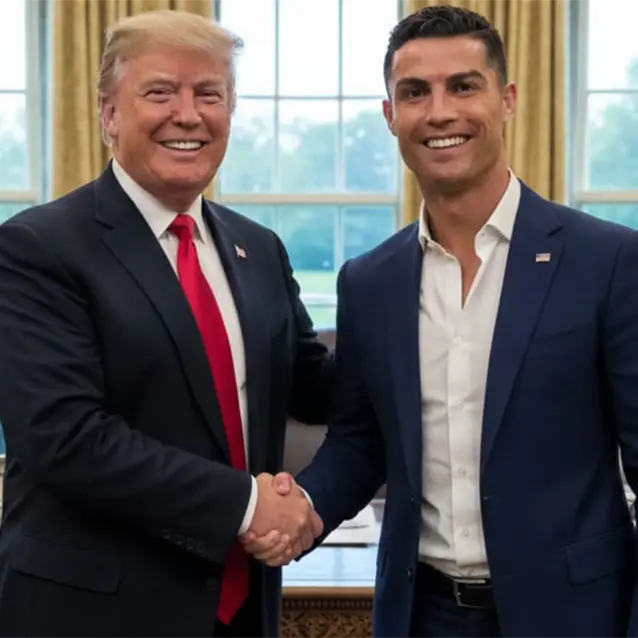 El video no termina ahí. Después del mensaje, aparecen imágenes generadas con IA de Donald Trump y Cristiano Ronaldo haciendo dominadas con un balón y jugando dentro de la oficina donde se encuentra el mandatario.