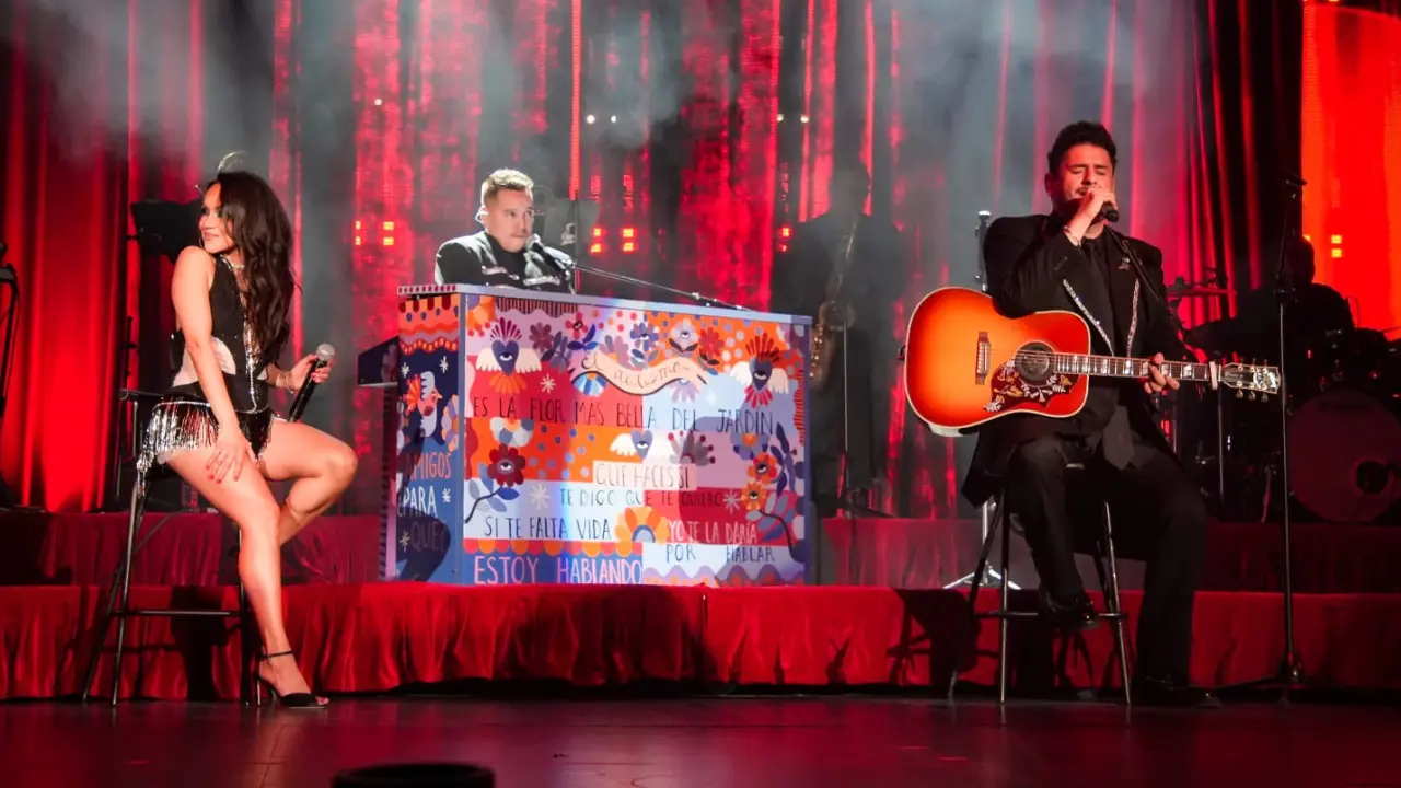 Durante el espectáculo, el trío integrado por Melissa Robles, Pablo Preciado y Román Torres ofreció una noche pop muy nostálgica y sorprendente, gracias a la participación especial de Los Tucanes de Tijuana.