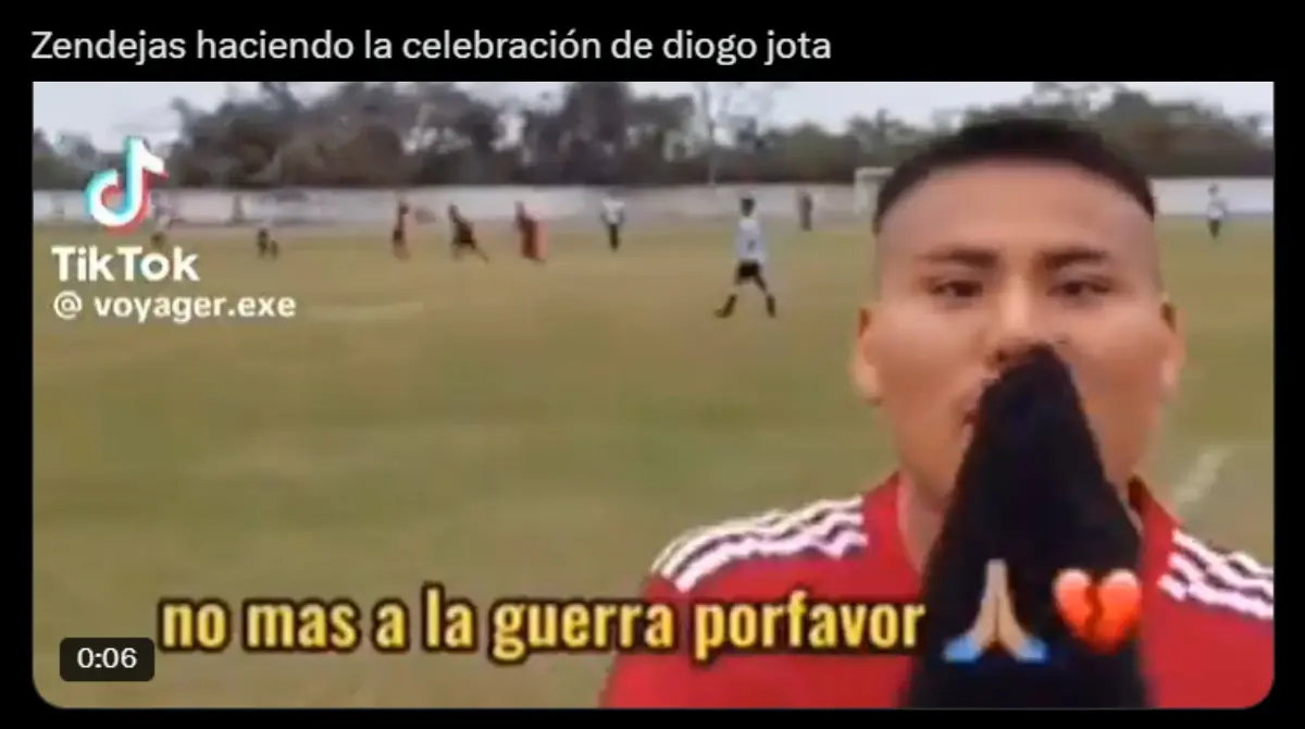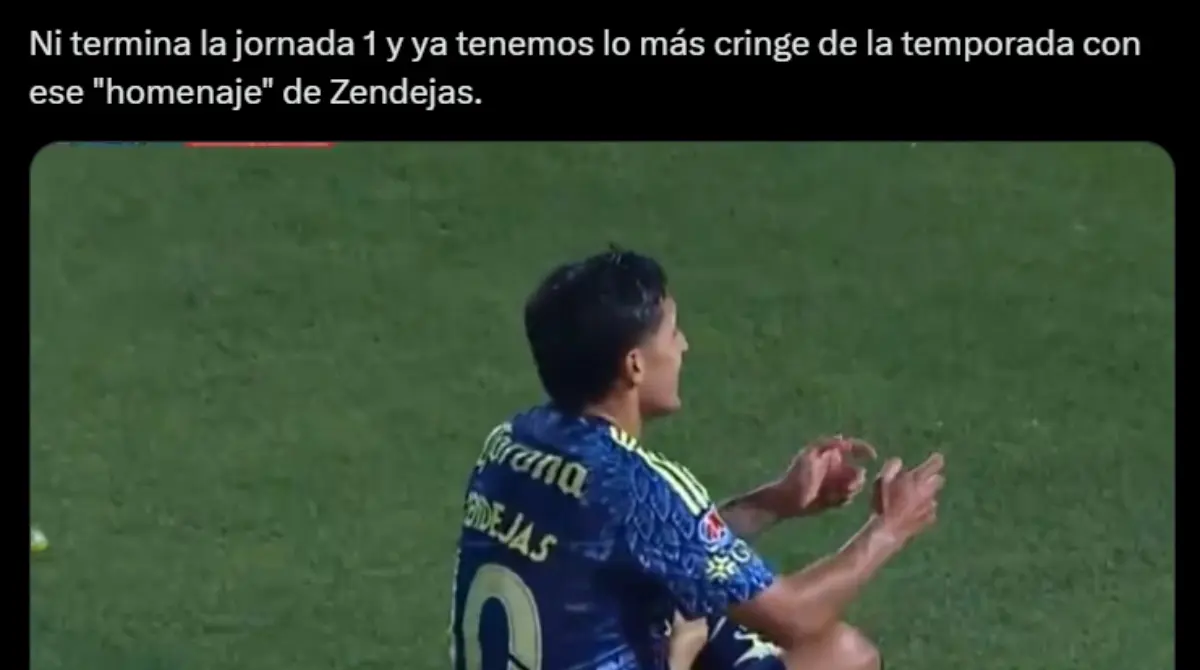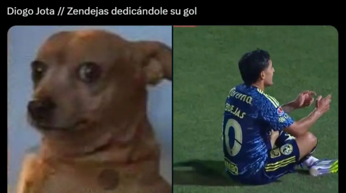 Alejandro Zendejas se convirtió en víctima de memes por celebrar como Diogo Jota. @clubamericaAlgo que el futbolista quería hacer emotivo lo llevó a convertirse en víctima de memes. Redes socialesLas burlas contra Zendejas no se hicieron esperar en redes sociales. Redes socialesLos señalamientos en su contra se dieron por ser algo completamente fuera de contexto. Redes socialesIncluso fue comparado con un meme relacionado al conflicto Rusia - Ucrania. Redes sociales Redes sociales Redes sociales Redes sociales Redes sociales Redes sociales Redes sociales Redes sociales